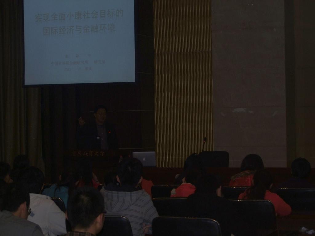 为了深入学习、领会党的十八大精神,并将其贯彻到学习、科研和教学中去,11月14日晚,我校经济学部、长江上游经济研究中心联合邀请中国社科院投融资研究中心主任董裕平研究员在田家炳书院408学术报告厅作了题为《党的“十八大”精神解读——实现小康社会目标的国际经济与金融环境》学术报告。报告由财政金融学院副院长毛跃一教授、中心专职研究人员唐路元教授共同主持,参加报告的有长江上游经济研究中心常务副主任文传浩教授、副主任杨文举教授、财政金融学院党总支副书记刘代成、靳景玉教授和部分应用经济学教师,以及应用经济学相关专业和思政学院的研究生、本科生。