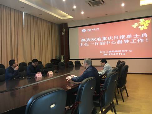 4月11日,重庆日报理论评论部单士兵主任、刘咏副主任到中心洽谈双方拟合作事宜。我校《西部论坛》杂志主编黄志亮教授、中心副主任杨文举教授、博士生导师文传浩教授及基地秘书刘霜参加了座谈会。