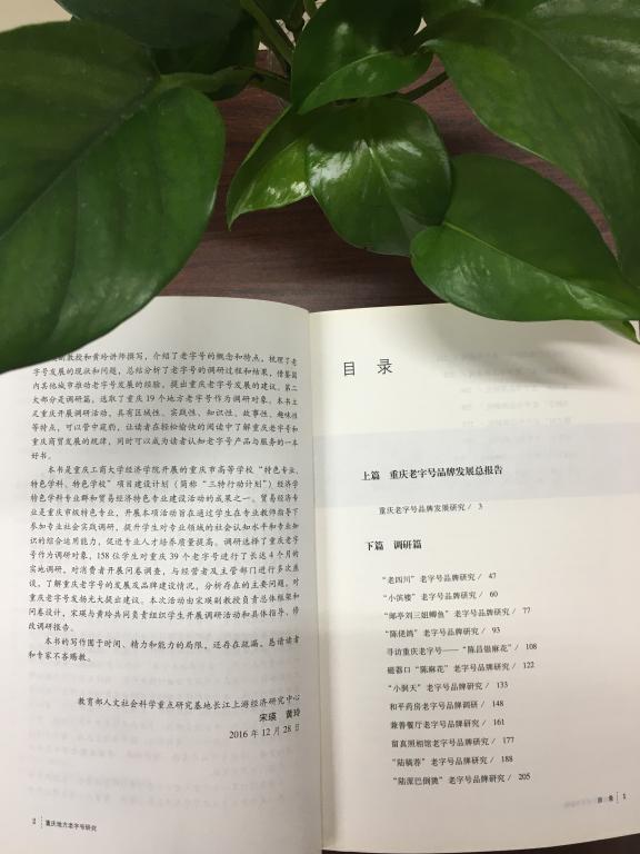 长江上游经济研究中心研究员宋瑛及在读博士黄玲所著《重庆地方老字号研究》,以日新月异、高速发展的时代为背景,通过对重庆地方老字号进行深度调研,了解老字号发展背后的故事,借鉴国内其他城市的老字号发展经验,分析商业环境变化下的消费者生活方式和消费理念转变对老字号的影响,思考重庆地方老字号在应对市场竞争时的战略策略。