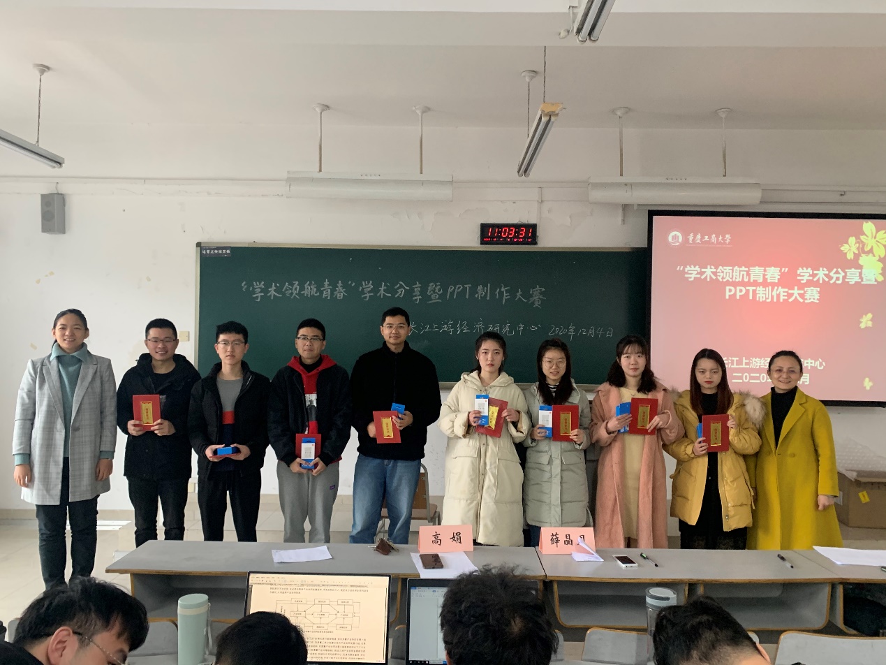 2020年12月4日上午9:30,由长江上游经济研究中心研分会策划的“学术领航青春”学术分享主题暨PPT制作大赛活动在博智楼301教室顺利举办。长江上游经济研究中心高娟老师、薛晶月老师、研一和研二的全体同学参与了本次活动。