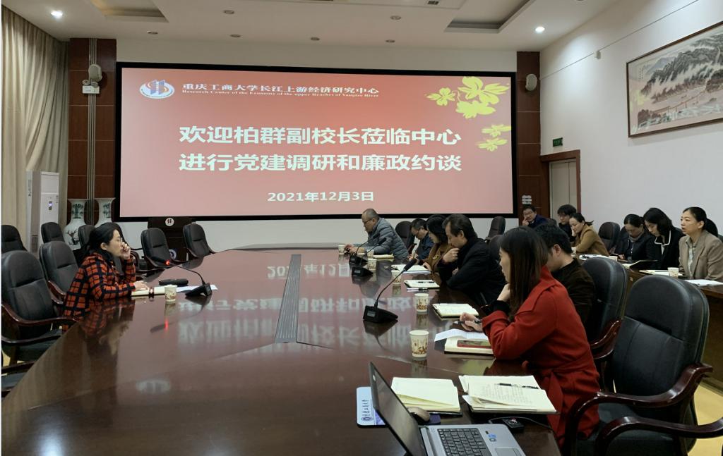 12月3日上午,副校长柏群到长江上游经济研究中心进行党建调研和廉政约谈。经济学院党委书记李自维,长江上游经济研究中心副主任饶光明、易淼及全体职工参加了会议。会议由李自维书记主持。