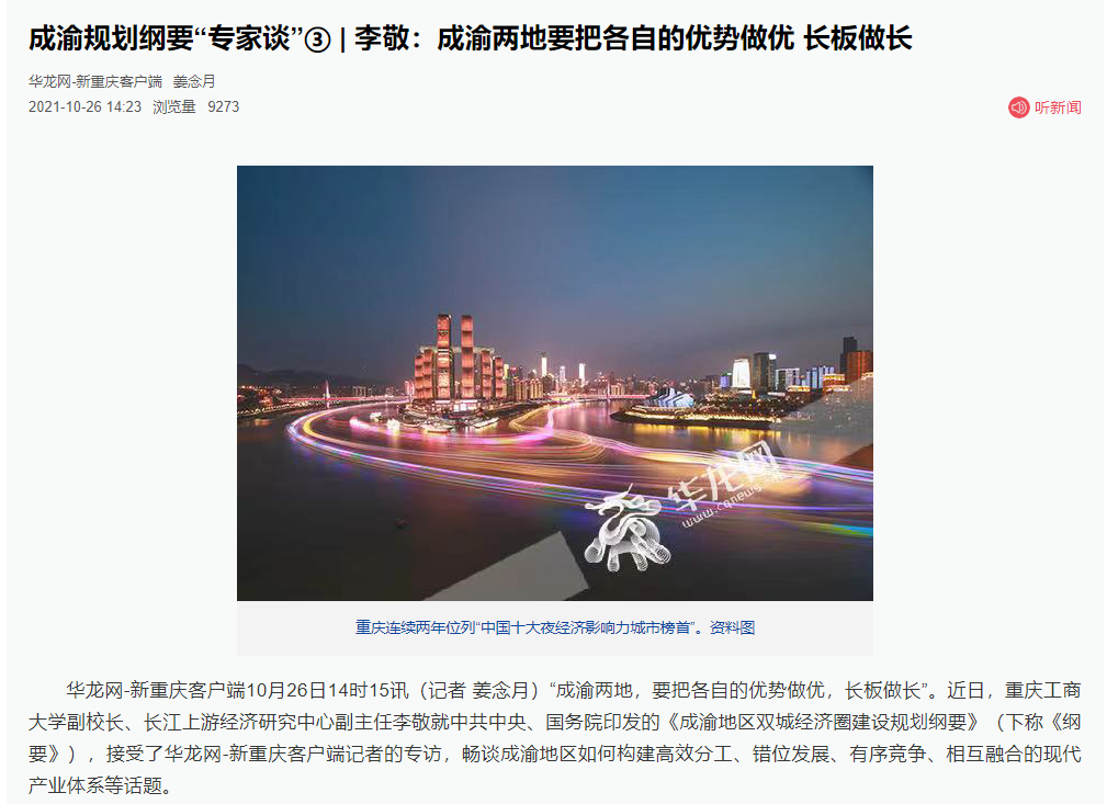 除了融合,李敬也对建设成渝地区建设现代交通基础设施网络,以及建立统一开放的市场体系方面谈了建议。