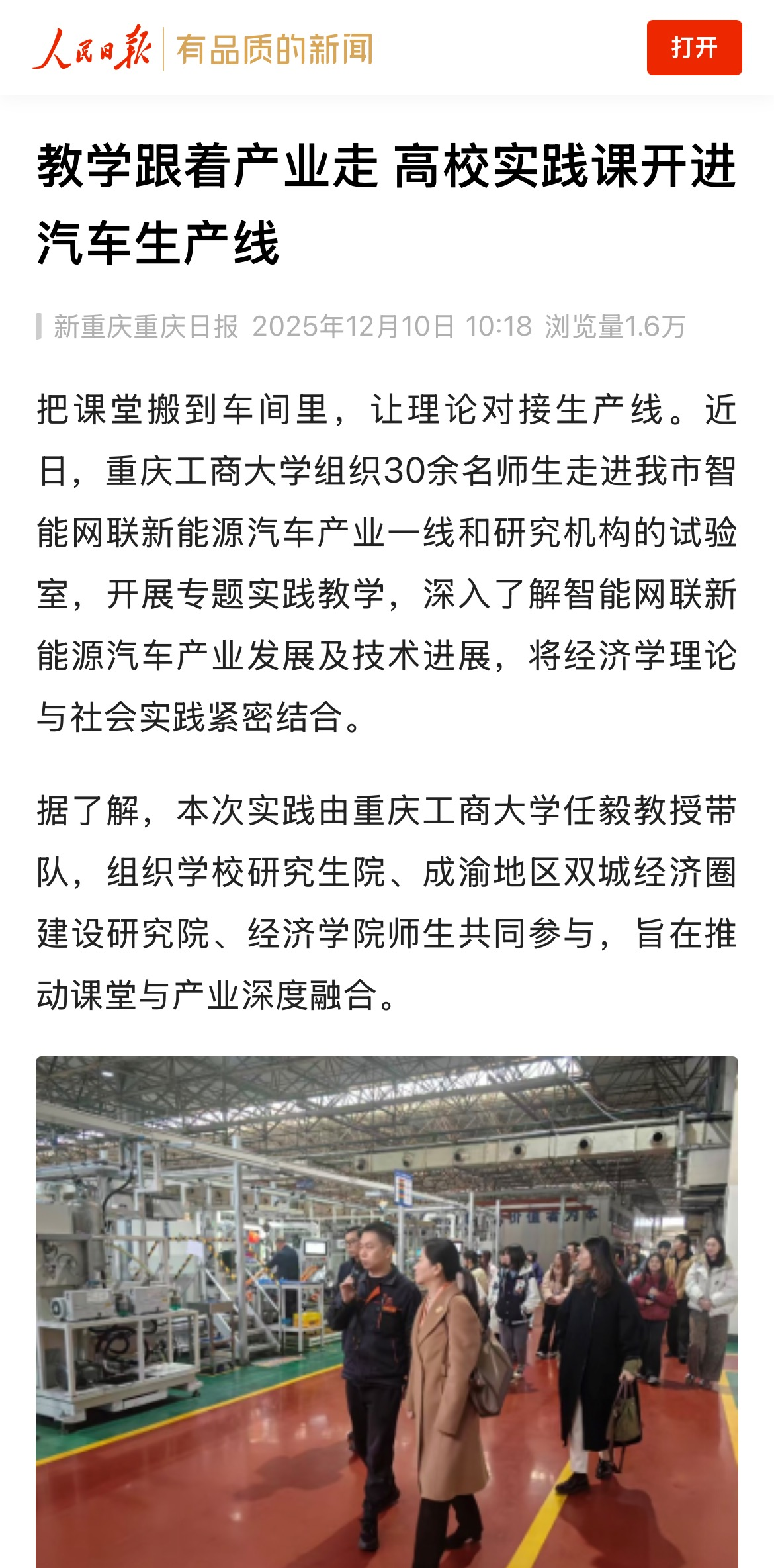 1.教学跟着产业走 高校实践课开进汽车生产线