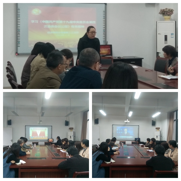 此次主题教育由支部书记郝颖老师领学,并通过观看视频的方式集中学习了《中国共产党第十九届中央委员会第四次全体会议公报》有关精神。支部书记郝颖老师对全会内容进行了详细解读,全会通过了1份重要文件,作出1个重要判断,给出1项重要结论,强调13个方面的“显著优势”,提出1个“总体目标”,明确13个“坚持和完善”,公布2项人事信息。