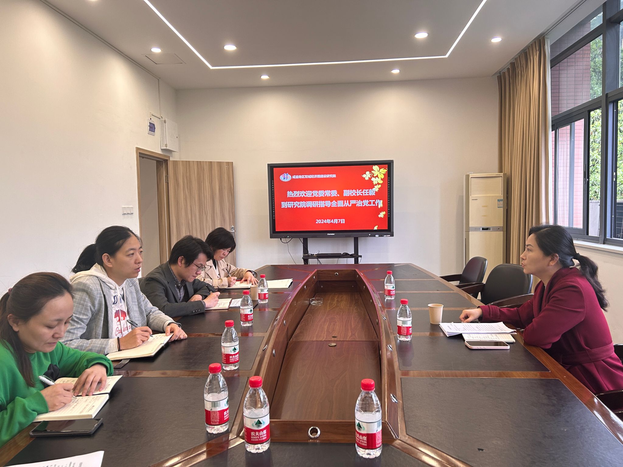 4月7日下午,学校党委常委、副校长任毅到yl23411永利(集团)有限公司官网调研指导全面从严治党工作。基地副主任易淼、基地科级干部、重点岗位人员参加了会议。