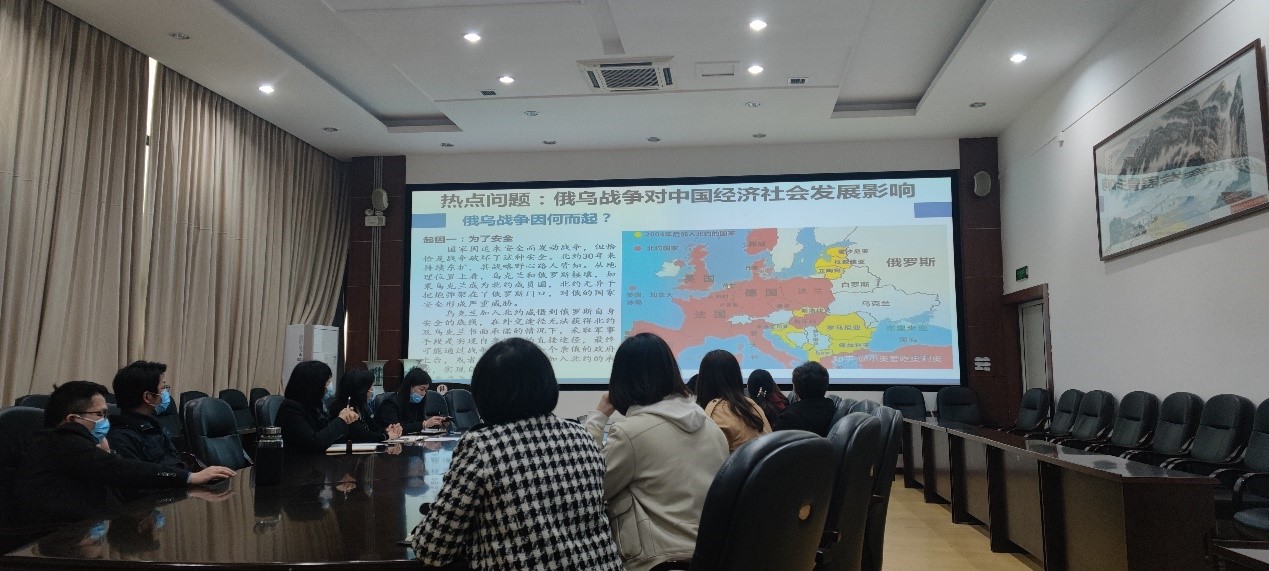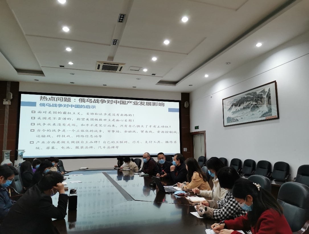 2022年3月31日下午,本月的支部组织生活由第一党小组主持开展,该小组组长由支部书记李颖慧副教授担任,组员由长江上游经济研究中心副主任饶光明教授、专职研究人员曾庆均教授和甘宇副教授组成,本次活动的主题为“从经济学视角观察俄乌战争对中国影响”。组织生活会伊始,李颖慧老师领学了3月组织生活的学习材料,并重点学习了《3月17日中共中央政治局常务委员会会议精神》,随后,支部从俄乌战争的起因、战争中的制裁、战争对中国产业发展影响、战争对中国的启示等方面展开热烈的讨论。支部党员一致认为,马克思提出的共产主义社会是我们人类和平的最高追求,只有共产主义实现了才不会出现因意识形态不同而引发的战争。这次战争也检验了习近平总书记提出的国内国际“双循环”新发展格局的重要性和高瞻远瞩。同时,这次战争也对中国国际影响力产生深远的影响,我们应更好的向世界讲好中国故事,使中国经验为世界后起国家和欠发达国家受益。支部党员们也相信无论中国以后会面临什么机遇和挑战,最终还是希望俄罗斯和乌克兰能迎来彻底的真正和平。饶光明教授还从科研选题的角度提出,2023年的国家基金项目可能会围绕全球化视角下的国家安全、自主创新、产业链、供应链等方面设计选题。