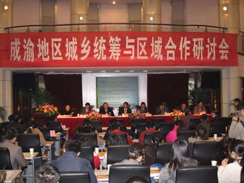 2007年12月6日-7日,由重庆工商大学长江上游经济研究中心和西南交通大学公共管理学院联合主办的“成渝地区统筹城乡与区域合作研讨会”在西南交通大学镜湖宾馆会议室隆重召开。本次研讨会共收到来自成渝两地相关政府部门、研究机构和高等院校专家学者及官员提交的会议论文80余篇。与会者主要围绕成渝两地“城乡二元经济结构、城乡统筹与制度环境、城乡统筹与产业发展、促进成渝地区区域合作的对策研究”等议题进行了深入的探讨和交流。