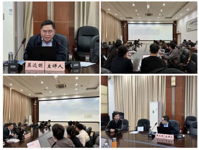 莫远明通过分析“十五五”时期咨政建言的“危”与“机”,论述智库研究工作的重要性,从战略定位、发展目标、组织架构、平台载体和品牌矩阵五个维度分享自己从事智库建设的实践经验,分别就宏观综合类、战略前瞻类、专题研究类咨政报告的研究选题、撰写范式、写作要点等咨政报告写作重点进行详细阐述,通过自身已有成功案例分享提高咨政报告写作水平的经验,对高校师生做好科研和咨政工作,提出基础研究和应用研究并重,打造高水平和标志性成果,融入政产学研用协同创新平台,以及提升决策影响力、学术影响力、社会影响力的建议。