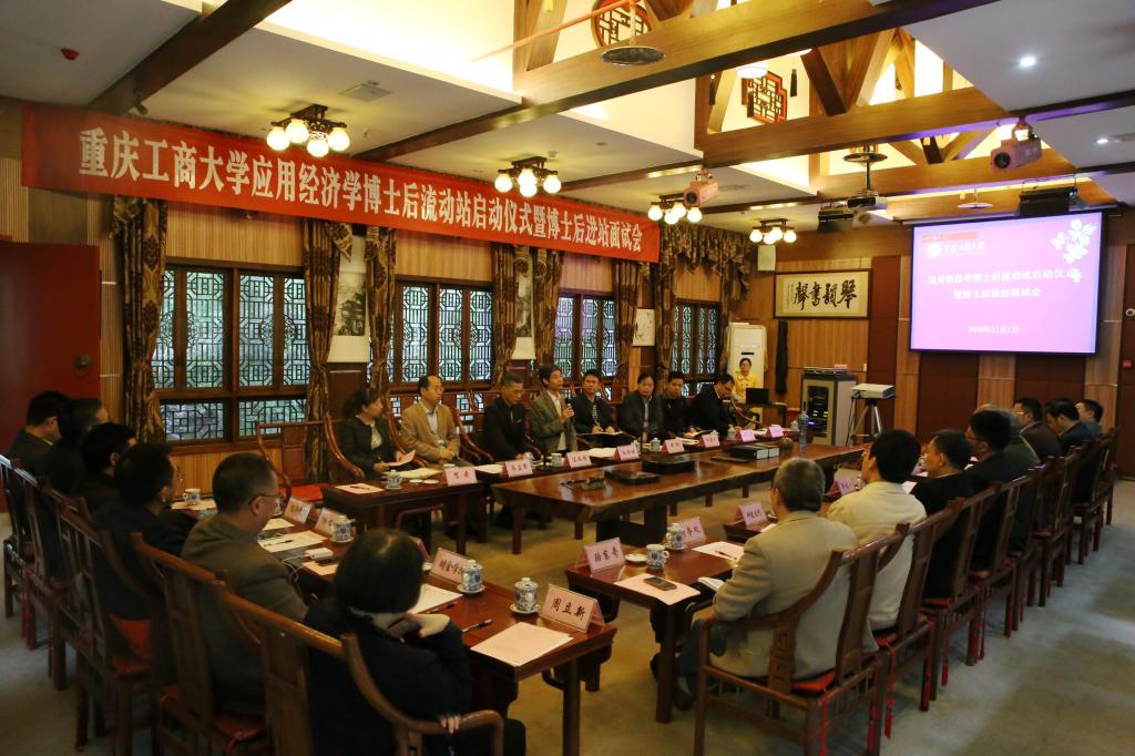 11月1日下午,应用经济学博士后流动站启动仪式暨博士后进站面试会在我校南山书院召开。重庆市人力资源与社会保障局专技处处长杨锐、重庆市教育委员会人事处副处长齐正军、重庆市教育委员会人事处胡天勇、重庆市人力资源与社会保障局专技处贺丹、赵凤阳,我校校长孙芳城、副校长陈运超、副校长何勇平、博士后管理工作相关部门负责人、经济学院及财政金融学院负责人、博士后合作导师、申请进站博士及长江上游经济研究中心在读博士生等参加了本次会议。本次会议由副校长陈运超主持。