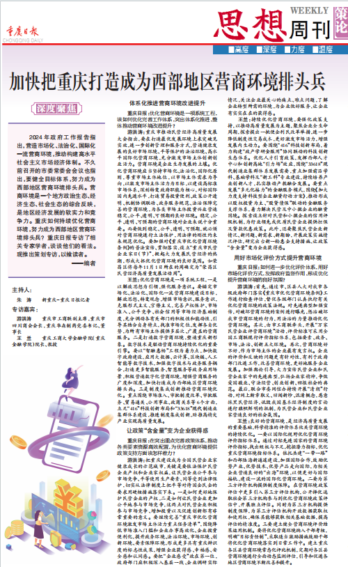 重庆日报:如何进一步优化评价体系,用好市场化评价方式,发挥政府监督作用,形成优化提升营商环境的良好氛围?