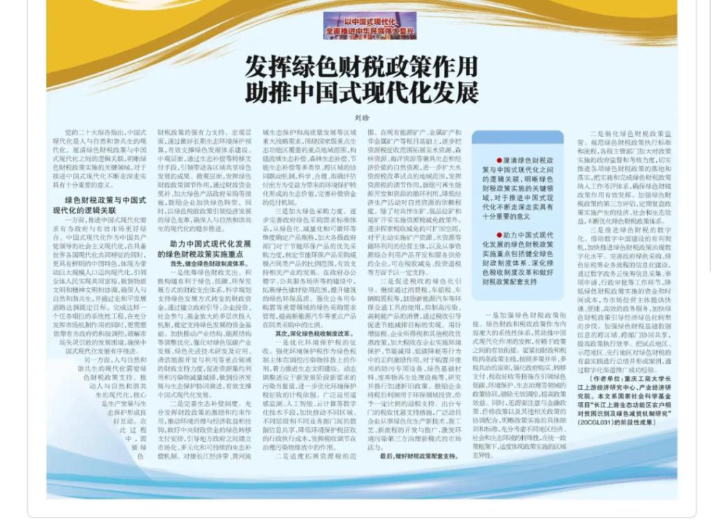 发挥绿色财税政策作用 助推中国式现代化发展