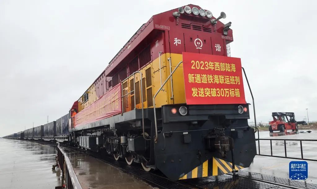 以西部陆海新通道建设为牵引推动内陆开放高地建设,是现代化新重庆建设的必然选择。 《行动方案》提出了发展目标、重点任务,并明确行动时间表,其中很多数据、指标可以说相当亮眼。 如,在“货运量、货值、联运箱量”三个核心指标上,文件就提出了具体的目标—— 到2027年,重庆经西部陆海新通道运行的货运量、货值,与中欧班列和长江黄金水道的联运箱量均实现倍增,与东盟的进出口额占比稳定在70%以上。 离目标只剩4年,“三个倍增”何以实现? 先看“家底”:数据显示,2022年,重庆经西部陆海新通道运输14.8万标箱、货值251亿元,同比分别增长32%、34%,占通道沿线地区总运输量的28%;新开辟运行线路78条,通道网络覆盖119个国家和地区的393个港口。 再看态势:今年1—4月,重庆经西部陆海新通道运输5.1万标箱、同比增长37%,货值78.84亿元、同比增长24%,良好增长态势仍在持续。