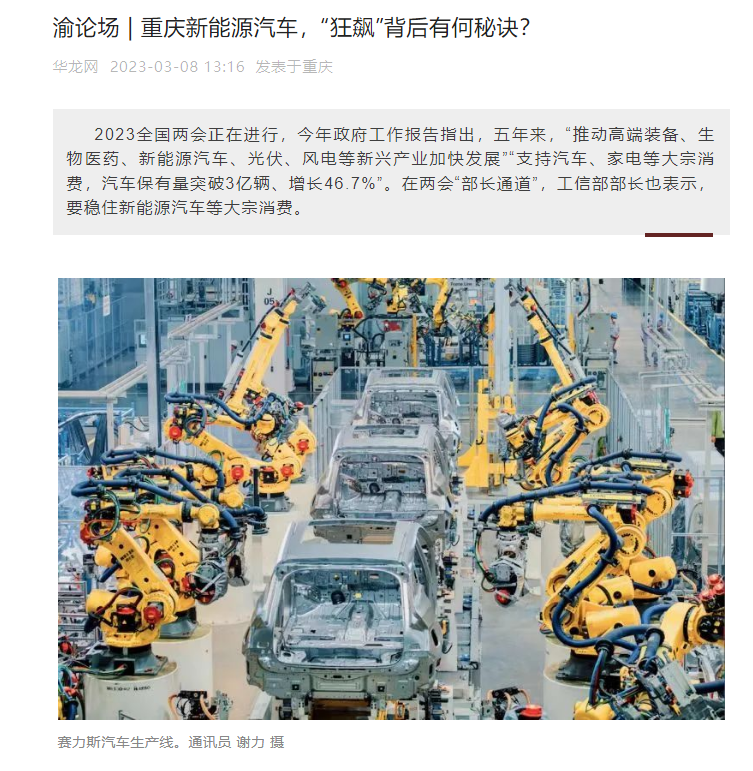 重庆工商大学经济系主任、长江上游经济研究中心研究人员李然副教授认为,一方面是因为重庆新能源汽车产业链供应链体系完善,产品质量和技术实力不断提升;另一方面,头部效应显现,消费者越来越认可长安、赛力斯等新能源汽车品牌。