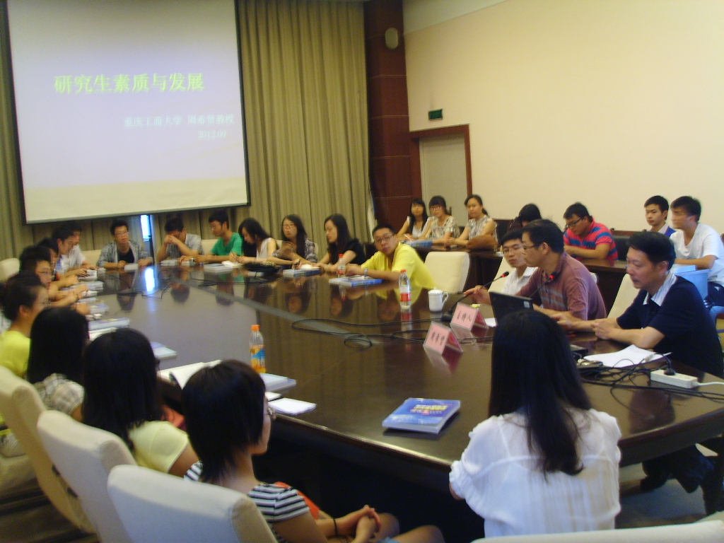 2012年9月14日上午10:00,长江上游经济研究中心在田家炳书院六楼会议室举行研究生入学教育讲座:研究生素质与发展,主讲人为原重庆工商大学党委书记、硕士生导师周希贤教授。讲座由长江上游经济研究中心常务副主任、区域经济yl23411永利(集团)有限公司官网常务副院长文传浩教授主持,中心副主任杨文举教授、研究生辅导员赵军峰老师列席,听取讲座的学生包括长江上游经济研究中心、财政金融学院以及经贸学院2012级研究生。