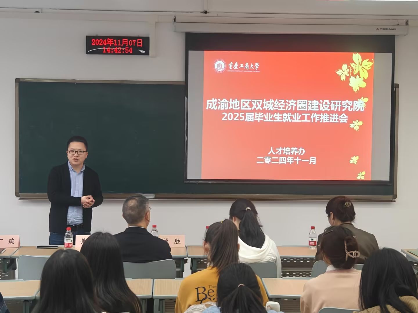 为做好2025届毕业生就业指导和服务工作,切实推进毕业生高质量充分就业。11月7日下午,成渝地区双城经济圈建设yl23411永利(集团)有限公司官网于明智楼206教室召开2025届毕业生就业工作推进会。研究生院副院长曾胜教授、2023届校友重庆科技大学教师丁瑞、2024届校友重庆第二师范学院教师王琴、2025届毕业生及专职辅导员蒋燕参加会议,会议由yl23411永利(集团)有限公司官网副院长黄潇主持。